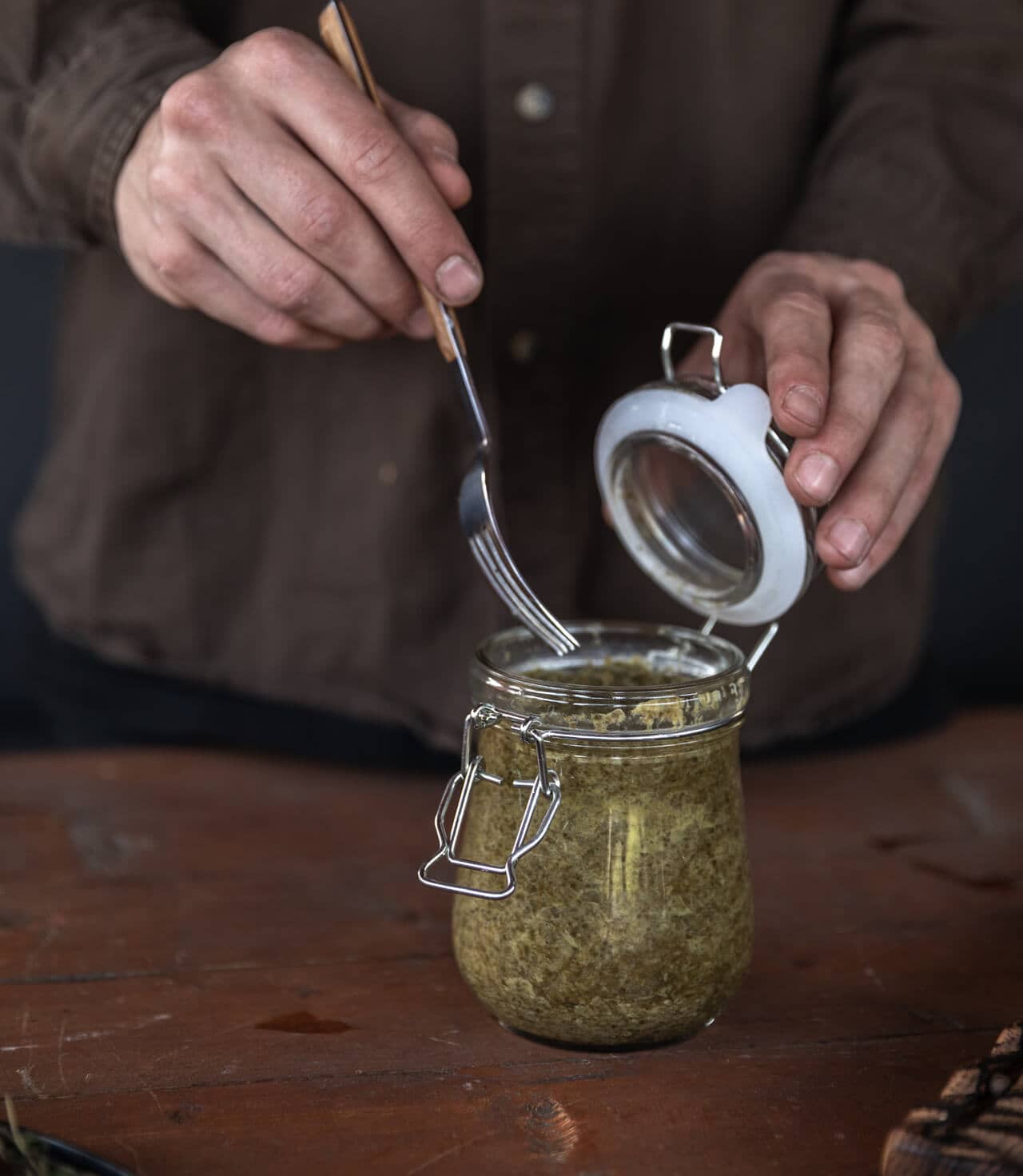 Food waste is not only a huge problem – it is also a major lever to lower the costs for food, energy, and climate protection. If you try to treat food more respectfully. That’s why we have a little inspiration for you: A delicious recipe for pesto made from leftover cauliflower leaves. Very recommendable – as a spread or on pasta.
