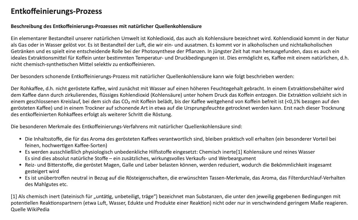 *Besonders schonend entkoffeiniert mit natürlicher Quellkohlensäure: CO2-Entkoffeinierung