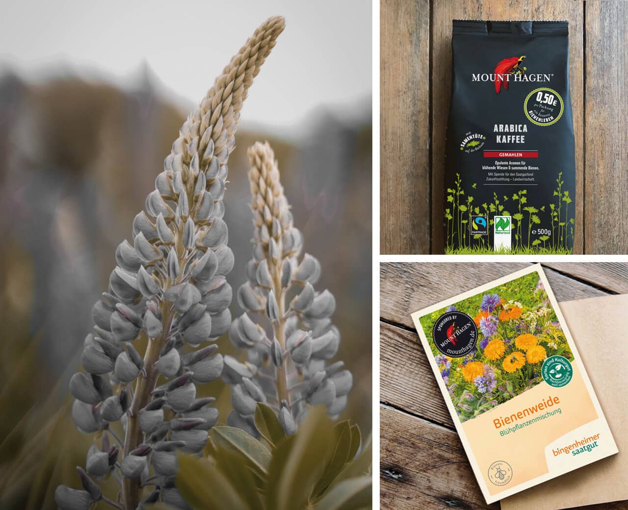 Lupinen. Mount Hagen Arabica. Und das Bienenweidensamen-Tütchen.