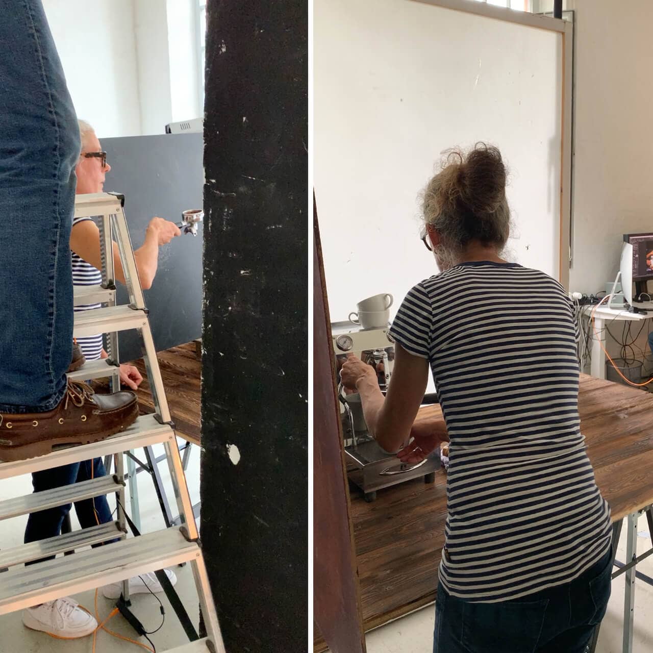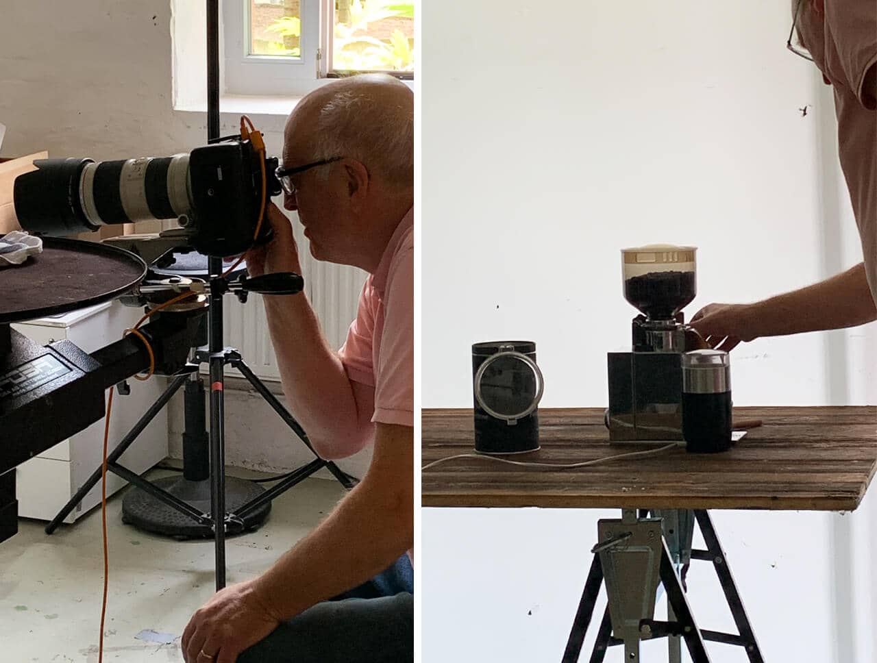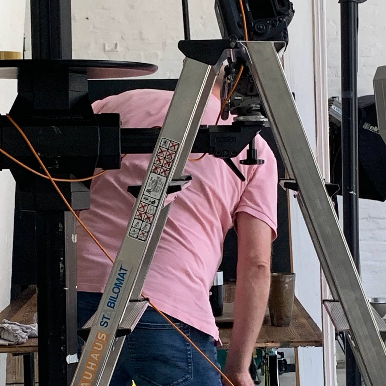 Hohe Leitern sind zwingend bei einem Kaffeeshooting (zumindest bei uns).